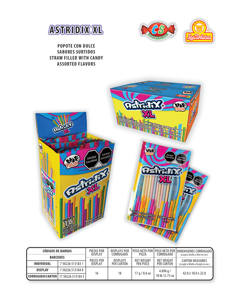 Popote con Dulce Sabores Surtidos Con 16 Pzas. por Display