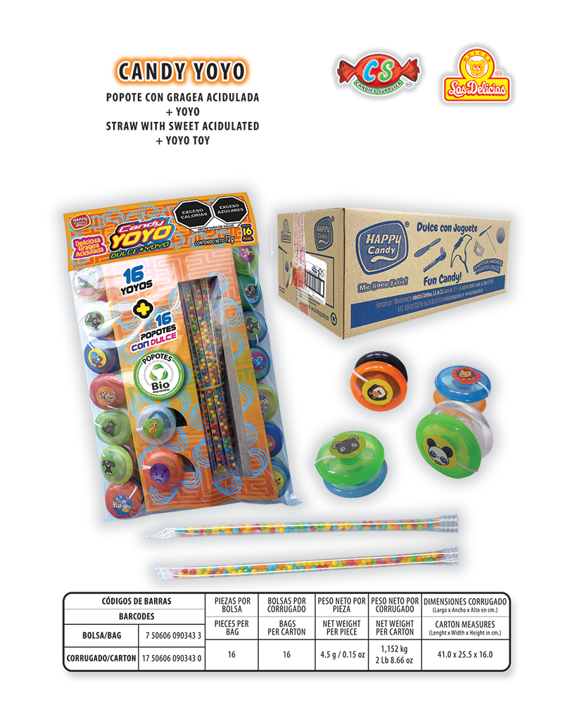 Popote con Gragea Acidulada y Yoyo Con 16 Pzas. por Bolsa