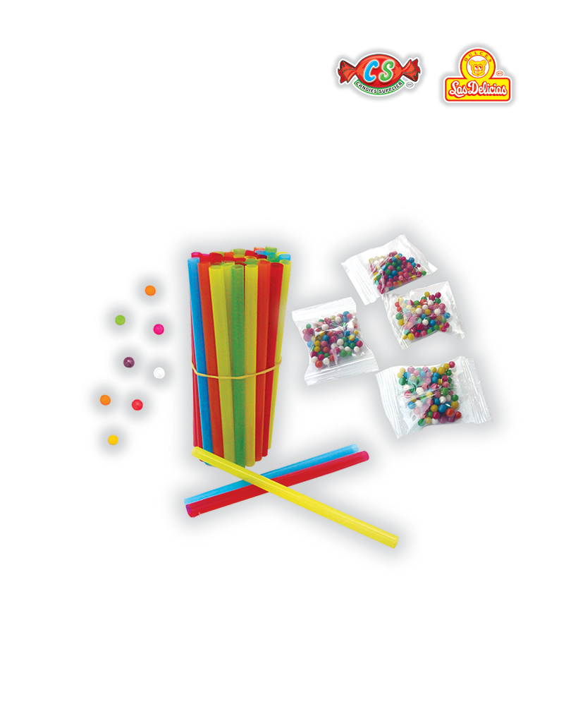 Popote con Gragea Acidulada y Arco Con 12 Pzas. por Bolsa