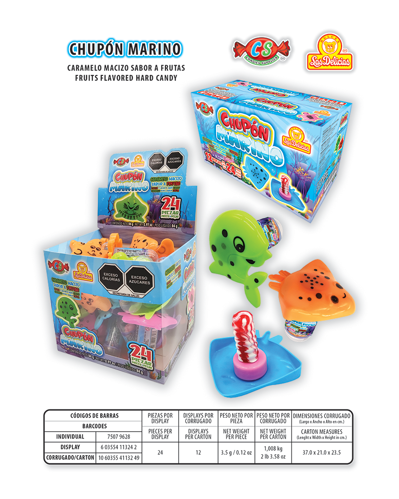 Caramelo Macizo Sabores Frutas Con 24 Pzas. por Display