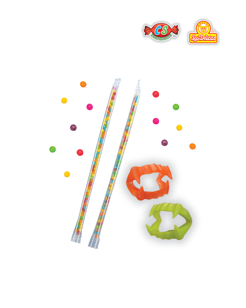 Popote con Gragea Acidulada y Colmillos de Plastico Con 20 Pzas. por Bolsa