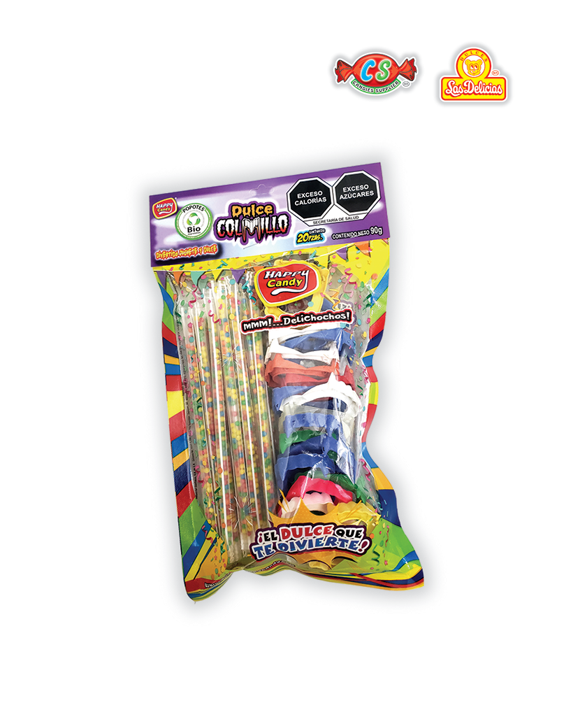 Popote con Gragea Acidulada y Helice Redonda Con 12 Pzas. por Bolsa