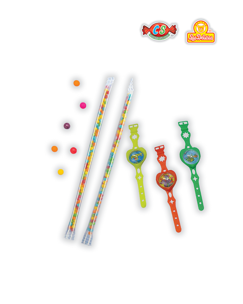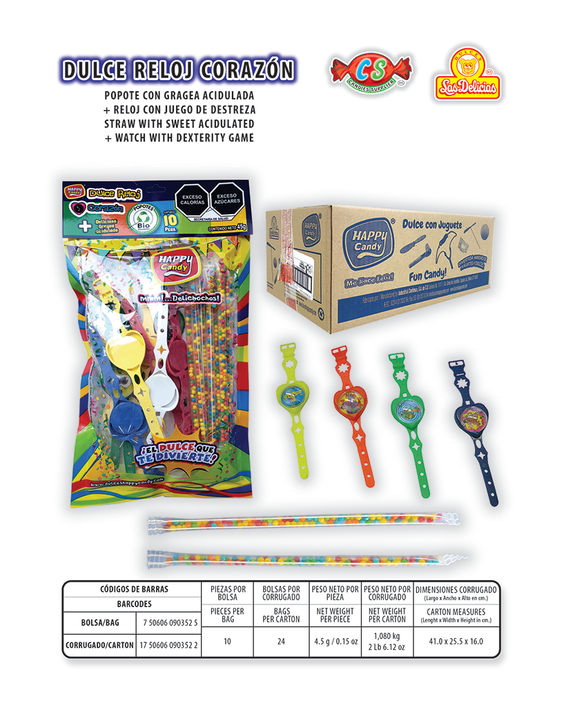 Popote con Gragea Acidulada y Reloj con Juego de Destreza Con 10 Pzas. por Bolsa
