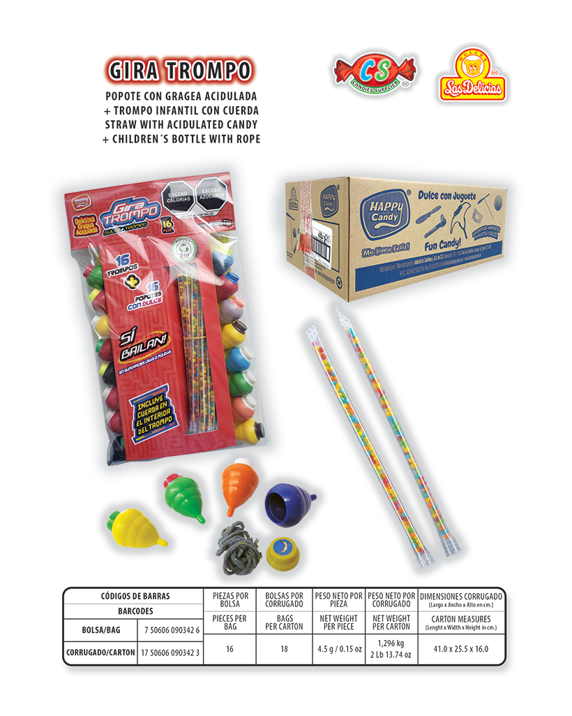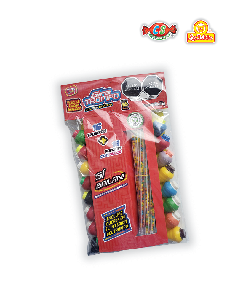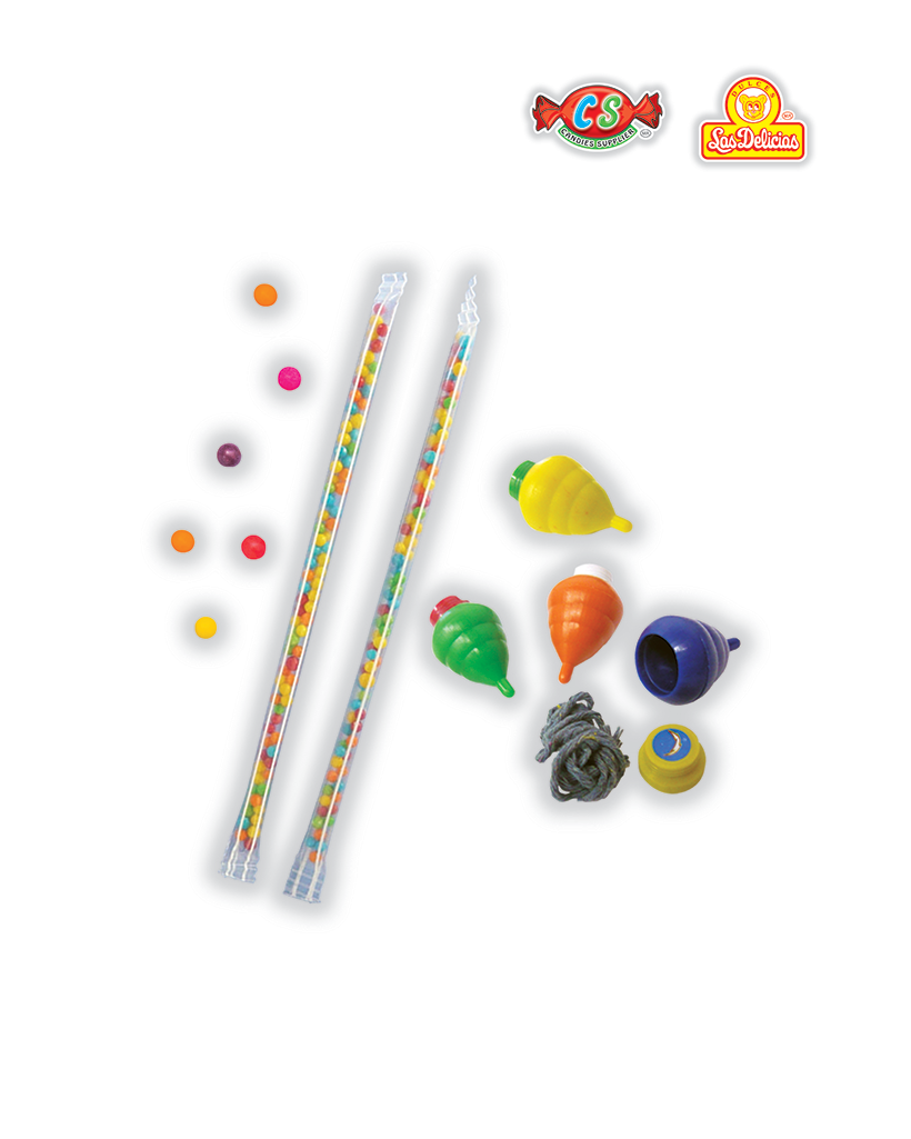 Popote Con Gragea Acidulada y Trompo Infantil con Cuerda Con 16 Pzas. por Bolsa
