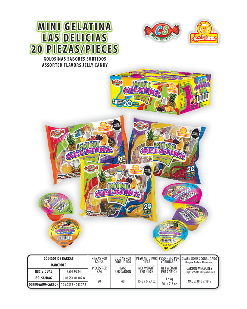MINI GELATINA LAS DELICIAS 20 PZAS