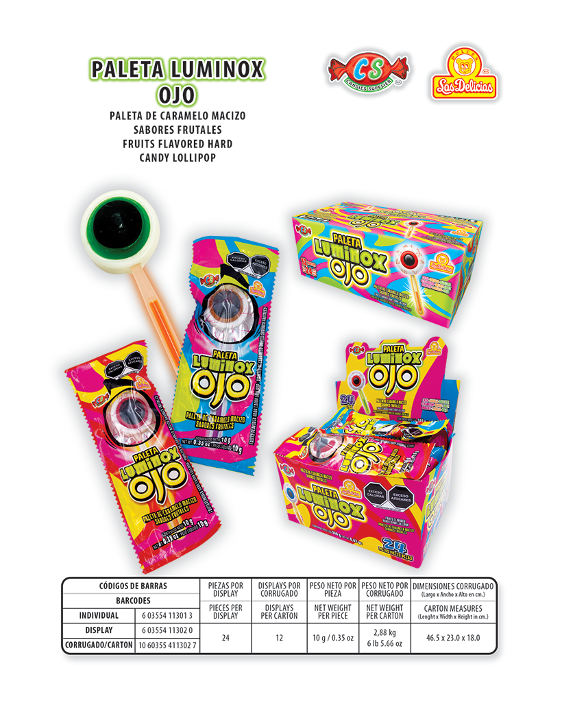 Paleta de Caramelo Macizo Sabores Frutales Con 24Pzas. por Display