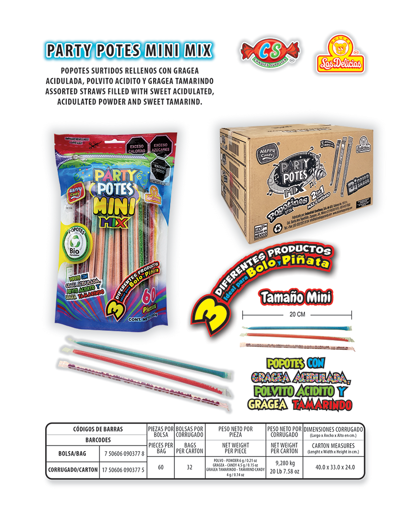 Popote con Gragea Acidulada y Espantasuegras Con 12 Pzas. por Bolsa