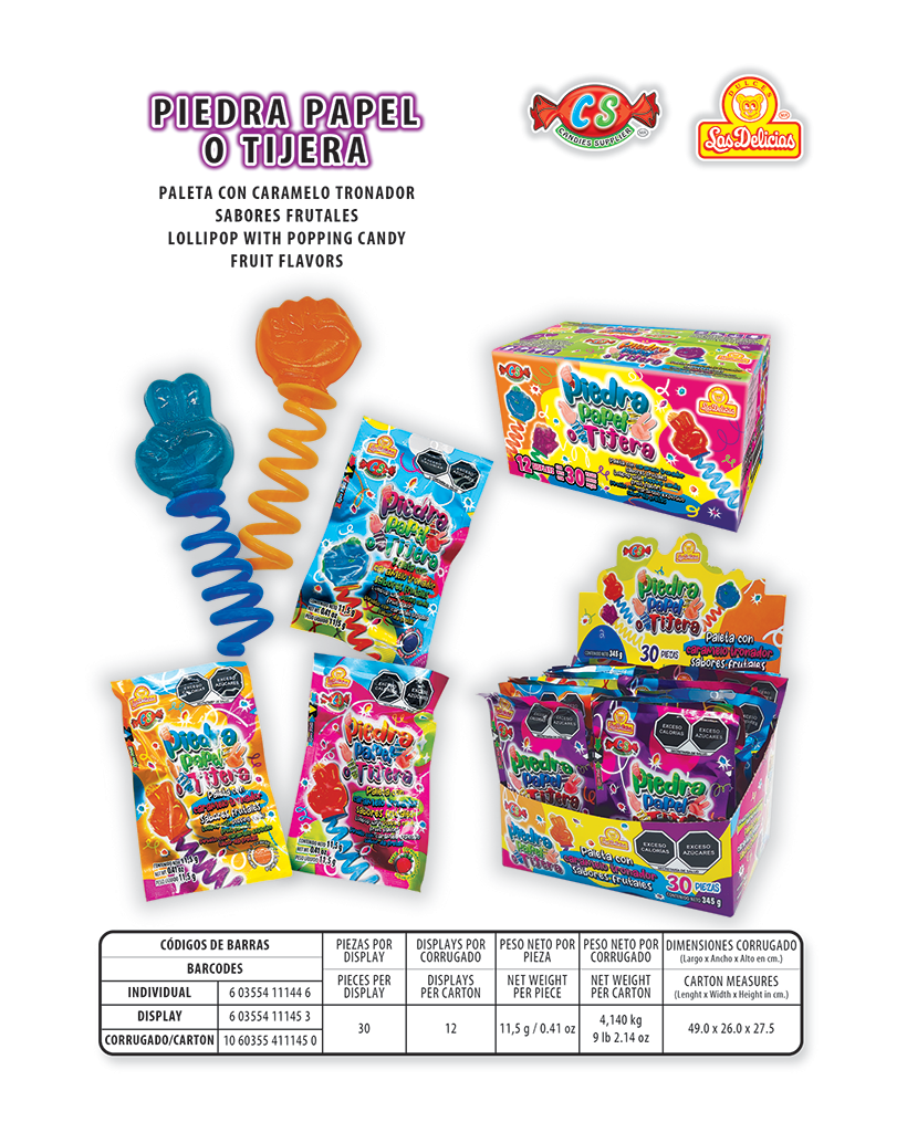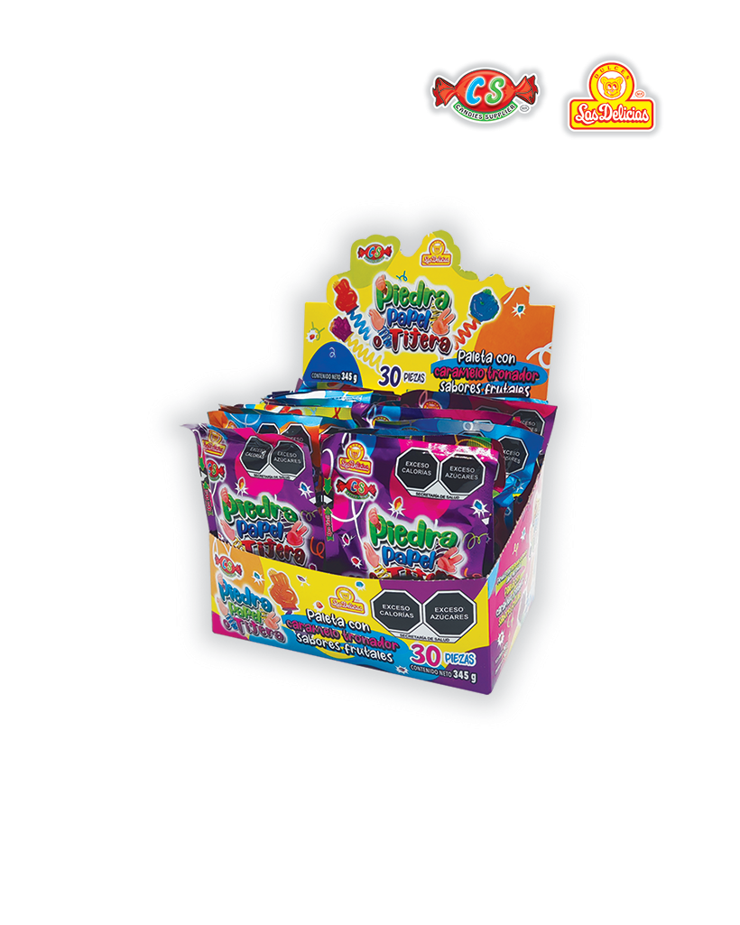Paleta de Caramelo Macizo Sabores Frutales Con 24Pzas. por Display