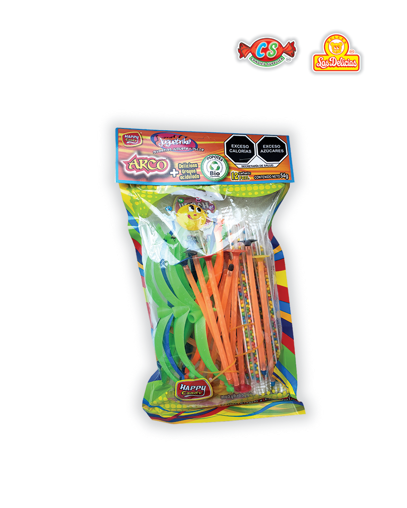 Popote con Gragea Acidulada y Arco Con 12 Pzas. por Bolsa