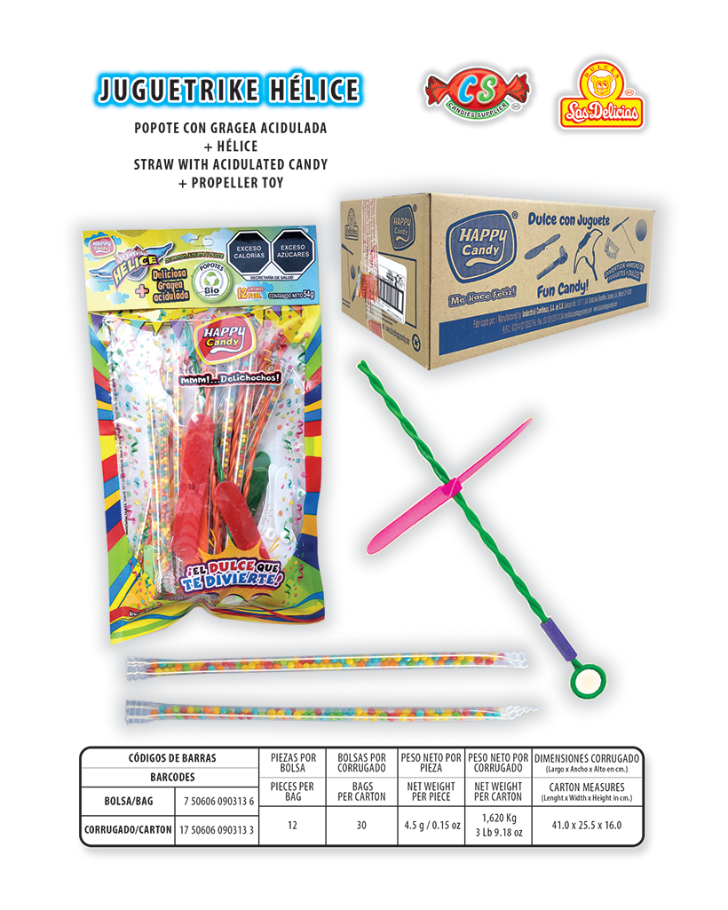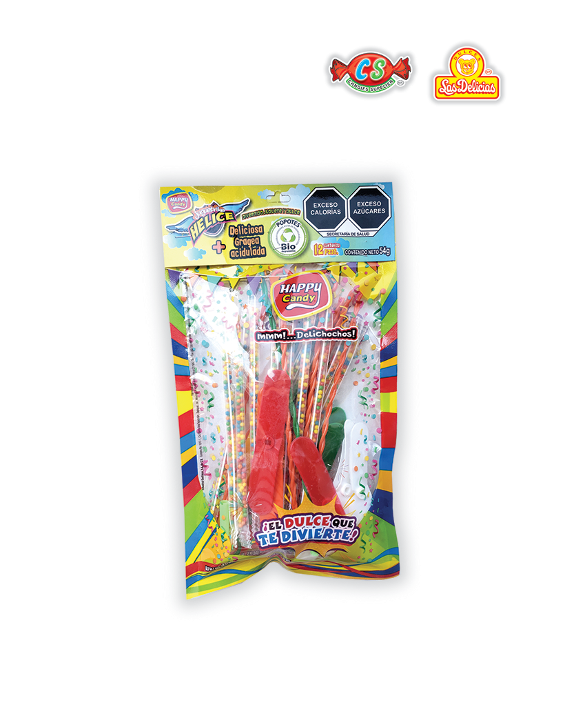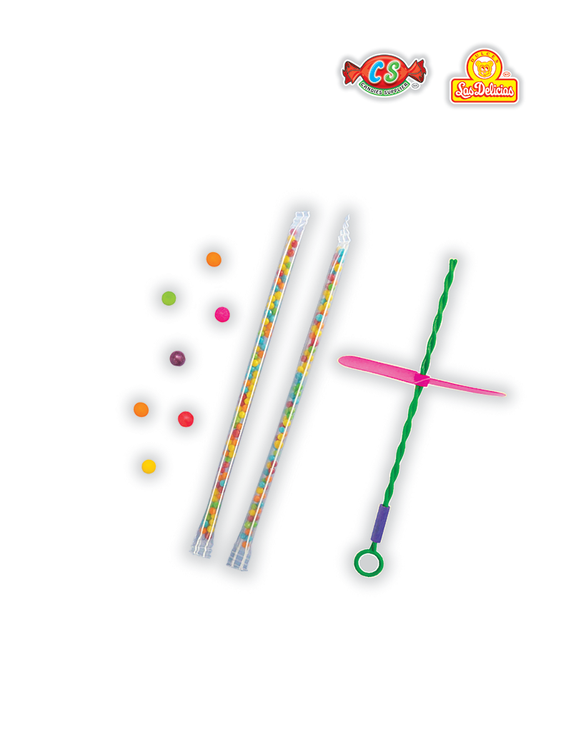 Popote con Gragea Acidulada y Helice Con 12 Pzas. por Bolsa
