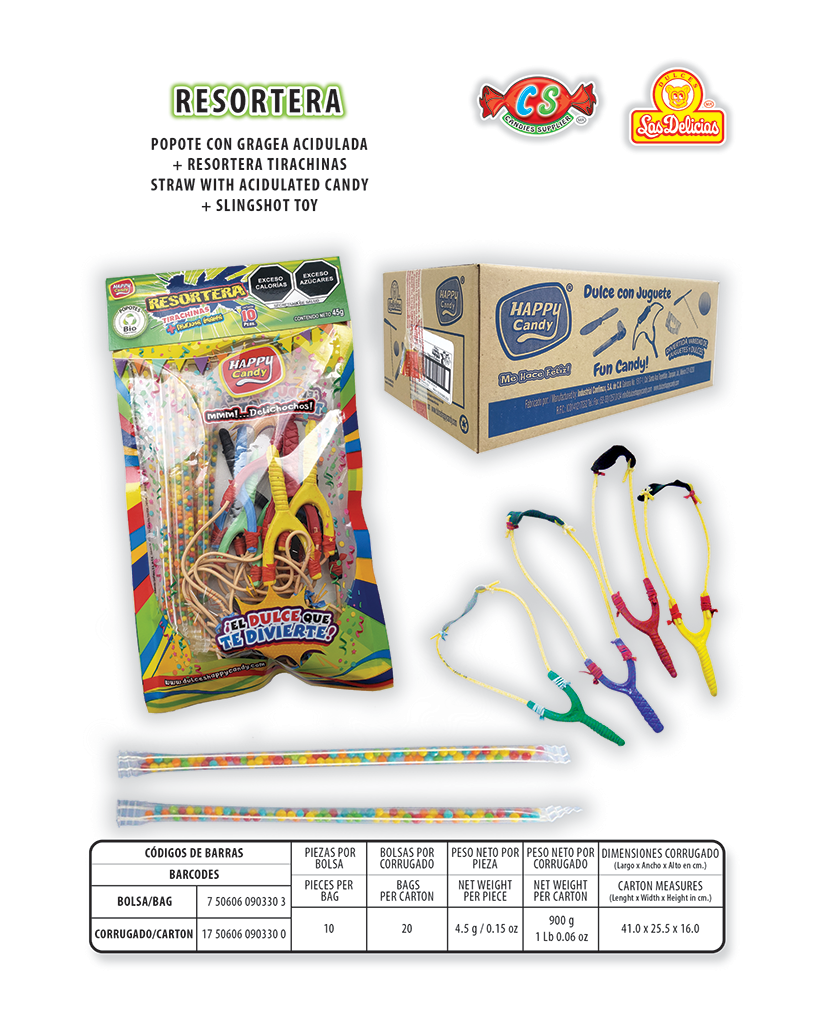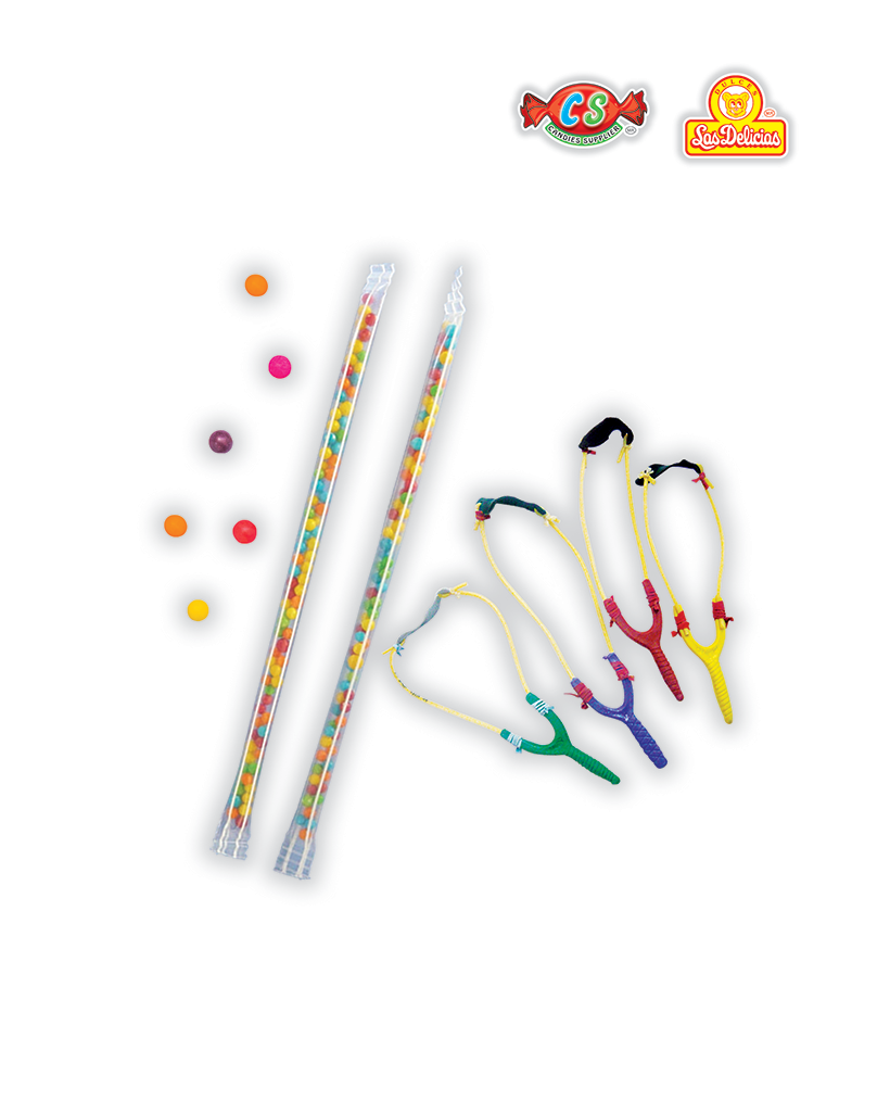 Popote con Gragea Acidulada y Resortera Tirachinas Con 10 Pzas. por Bolsa