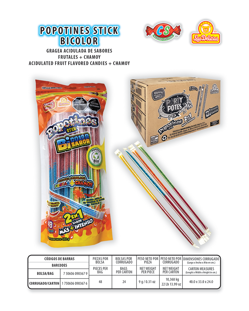 Popote con Gragea Acidulada y Helice Con 12 Pzas. por Bolsa