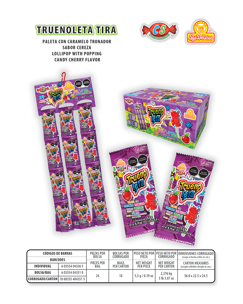 Paleta con Caramelo Tronador Sabor Cereza Con 24 Pzas. por Bolsa