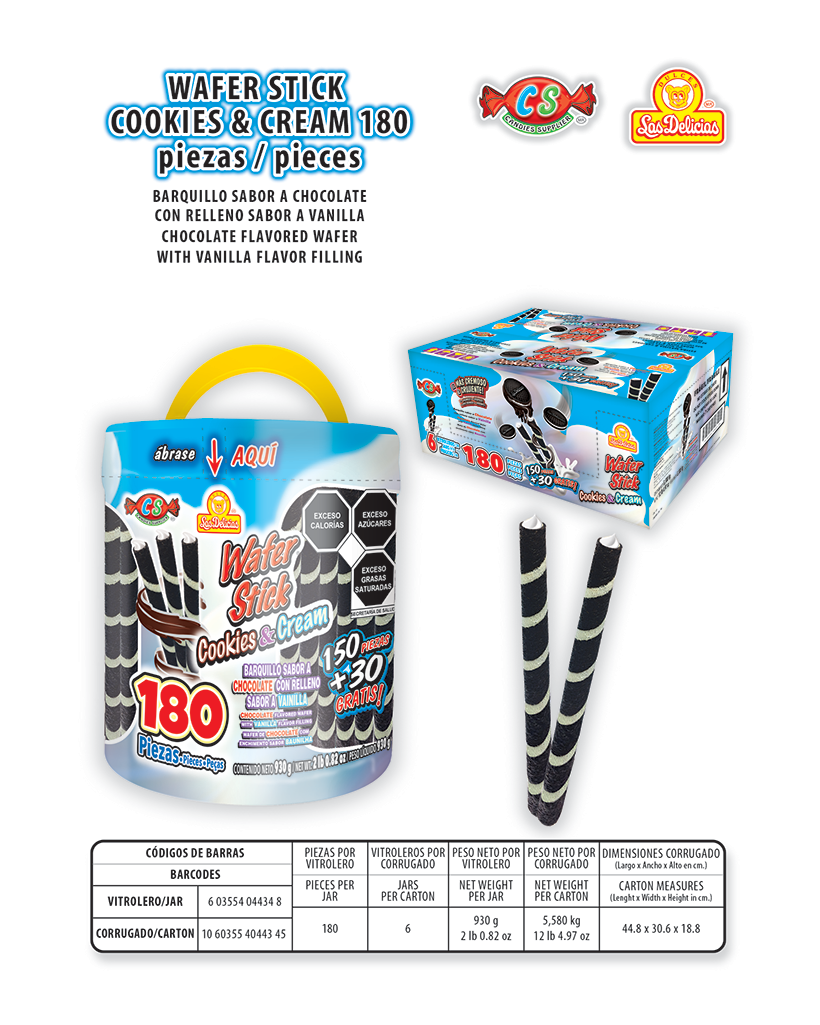 WAFER STICK COOKIES & CREAM 180PZAS